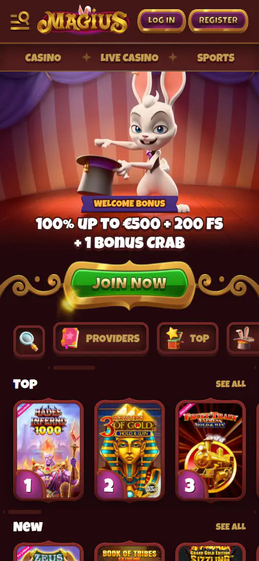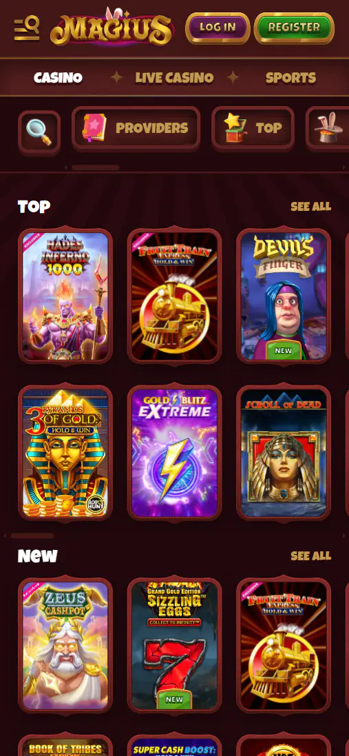 Thumb comfort was the driving force behind the design of every pixel on our site. Our main navigation sits low – Home, Magius Online Casino Games, Cashier, Promos, Account – within easy reach on large screens. Then, you can swipe left to cycle hero banners and long‑press a game tile for paytable, volatility and provider without leaving the grid.